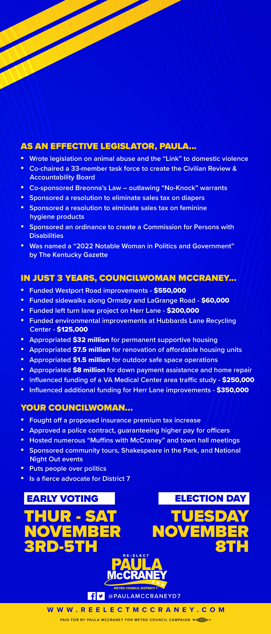 If you would like a yard sign, please email your address to pauladmccraney@gmail.com