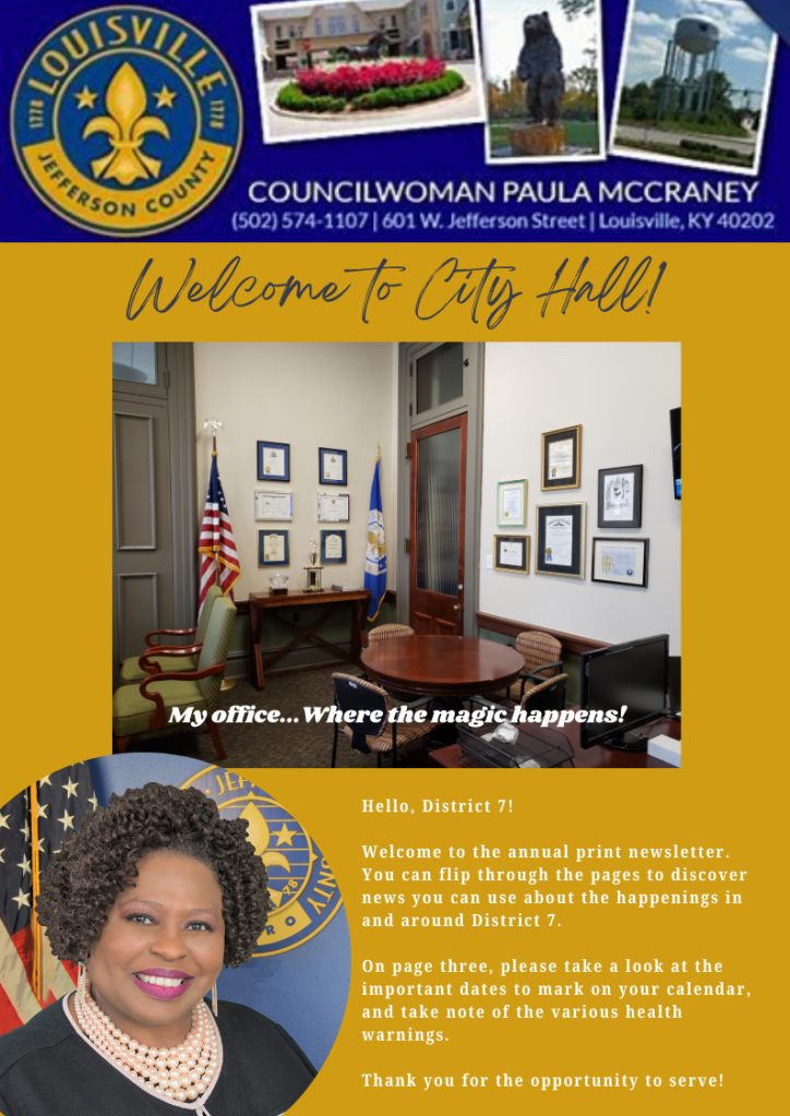 Accessthe District 7 Metro Council website to review: 1. Councilwoman McCraney’s legislative voting record 2. Archived Metro Council meetings 3. The Councilwoman’s District 7 Neighborhood Development Funds (NDF) & Capital Investment Fund (CIF) spending, and so much more.